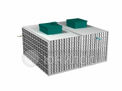 Оптимально подходит для комфортного проживания до 50-ти человек с потребительским набором сантехнического оборудования 6 унитазов, 7 раковин, 4 душевых кабины и 2 ванные. Перерабатывает поступающие сточные воды без запаха и шума. На выходе выдаёт 99% очищенную воду, готовую к повторному использованию и не требующую дополнительной доочистки в полях фильтрации. Срок полезного использования 50 и более лет. Устанавливается в любых типах грунта.По необходимости может комплектоваться принудительным выбросом очищенной воды (насос+емкость)